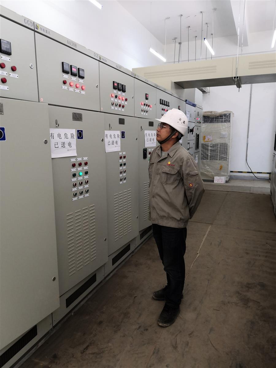 徐培強(qiáng)在檢查配電柜的送電情況