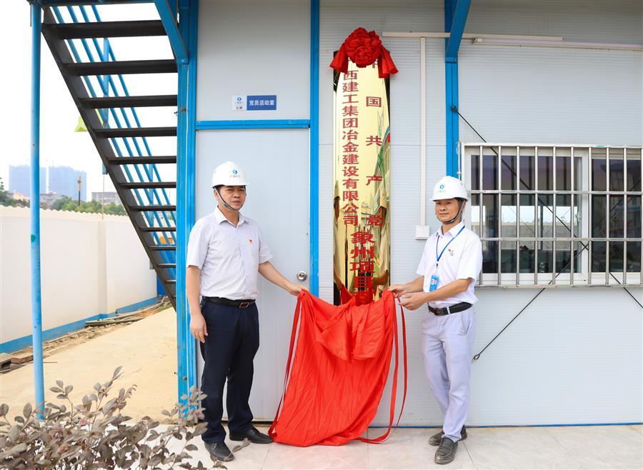 蒙勝益(左)與項(xiàng)目黨支部書記馬文雄共同為支部成立揭牌