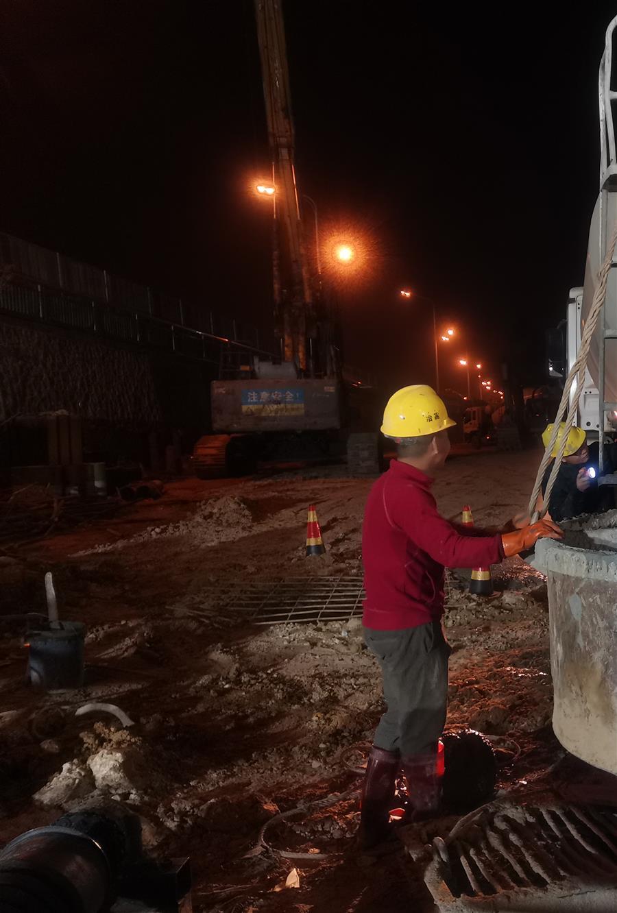 雒容中溝泵站項目夜間加班不停歇