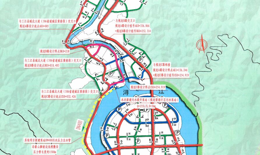 該項(xiàng)目位于柳州市三江侗族自治縣黃排片區(qū),結(jié)合規(guī)劃區(qū)發(fā)展的功能需求,圍繞著三江縣新三江中學(xué)學(xué)校地塊,規(guī)劃形成“一帶、一環(huán)、四心、五軸、七片”的城市結(jié)構(gòu)體系與“山、水、城、田、人”相融的組團(tuán)城市格局?!耙粠А敝缸詵|向西貫穿城區(qū)的潯江風(fēng)情帶,連接縣城多個片區(qū);“一環(huán)”是由潯江大道-侗鄉(xiāng)大道-河西老城西環(huán)線-宜陽大道構(gòu)成的城市環(huán)線;“四心”分別是指潯江半島行政文體中心、河?xùn)|侗鄉(xiāng)民族文化中心、大洲島旅游活動中心和火車南站客運(yùn)樞紐中心;“五軸”分別是指連接到城市環(huán)線的桂三高速公路連接線、209 國道周坪段、321 國道周坪段、龍吉大道和三柳高速公路程村連接線;“七片”則分別是指黃排片區(qū)、河西老城片區(qū)、河?xùn)|新城片區(qū)(含潯江半島)、周坪片區(qū)、大洲島片區(qū)、龍吉片區(qū)和火車南站片區(qū)。