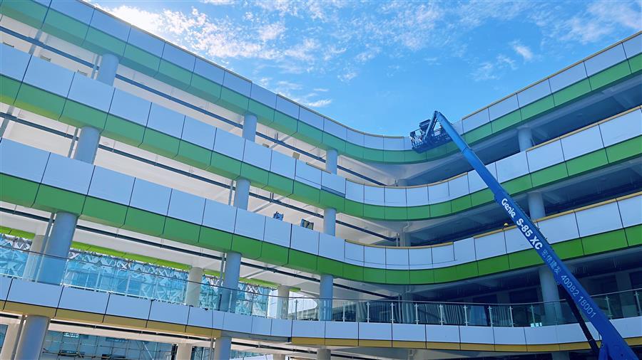 經(jīng)過兩個多月的奮戰(zhàn),項目已進入施工收尾階段,并有望提前竣工。當前,項目總進度已完成90%以上,小學和初中部共4棟教學樓及行政樓內(nèi)裝、智能化設備安裝、電氣等已全部完成,行政樓一樓報告廳除地板正在安裝外,其他已基本完成,風雨操場正在進行外墻鋁隔板安裝,室外兩個運動場及校園內(nèi)場地鋪裝已基本完成。