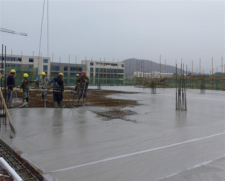 連日來,柳州市農副食品加工園項目(二期)A標工程項目部開足馬力、全力加快推進項目建設。該項目總建筑面積6.8萬平方米,目前1#標準廠房1-7軸主體結構封頂;3#標準廠房2層梁板砼澆筑完成。