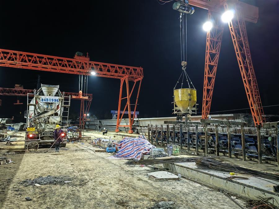 近期天氣狀況多變,部分施工場地需要復(fù)墾,影響施工進度。面對困難和挑戰(zhàn),項目部嚴格按照施工方案,結(jié)合現(xiàn)場實際情況,通過精心組織技術(shù)交底,科學部署,發(fā)揚“5+2”“白加黑”連續(xù)作戰(zhàn)精神,全力以赴推進項目建設(shè)。截至目前,該項目累計完成樁基礎(chǔ)澆筑184根、橋梁上構(gòu)預(yù)制梁澆筑136片、橋梁下構(gòu)澆筑完成22道地系梁、50根墩柱和18片蓋梁、2個橋臺,完成路基回填土5萬方。