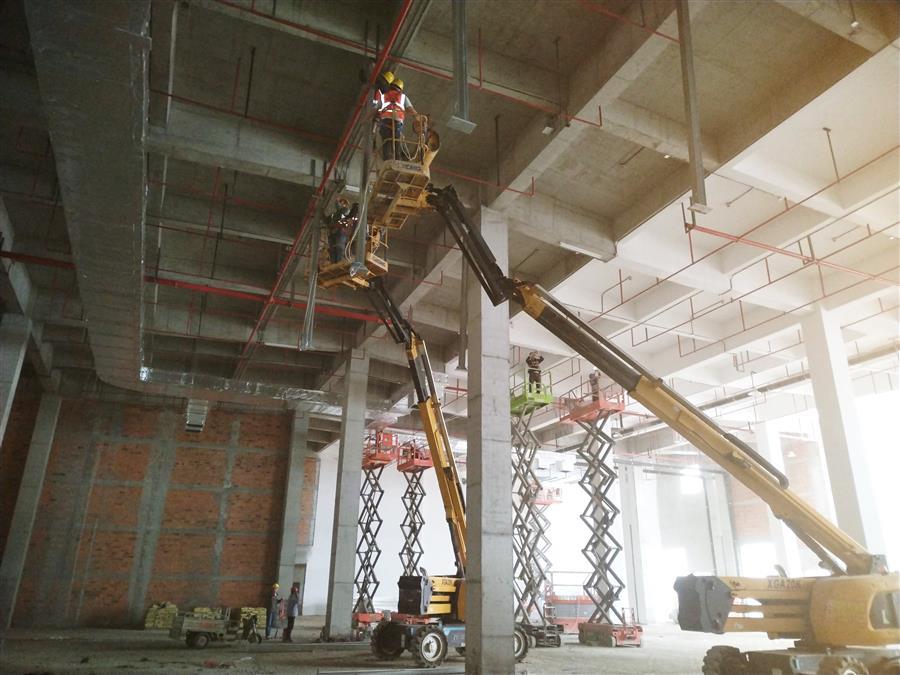 雨天巧干、晴天大干。項目部制定周密、科學(xué)的施工計劃,提前做好應(yīng)急預(yù)案,每天根據(jù)天氣變化對工作時序、應(yīng)對措施、安全保障等情況進行逐一落實,充分利用好天氣窗口期,因時制宜,在保障安全作業(yè)的前提下,推進穿插施工,盡一切可能搶抓進度,將攻堅再加速。目前,各樓棟水電消防完成90%,外墻膩子和外墻漆施工完成過半,窗玻璃安裝完成60%,內(nèi)墻膩子完成80%;生產(chǎn)車間真石漆施工完成60%,49-61軸鋁板幕墻安裝完成15%,49-61軸二層金剛砂地坪完成30%,屋面卷材防水完成90%,屋面防水砼保護層完成60%;宿舍樓外墻裝飾線條完成80%,綜合樓外墻裝飾線條完成70%;室外管網(wǎng)路基施工完成40%。項目累計完成施工產(chǎn)值4.2億元,完成合同造價的82%。