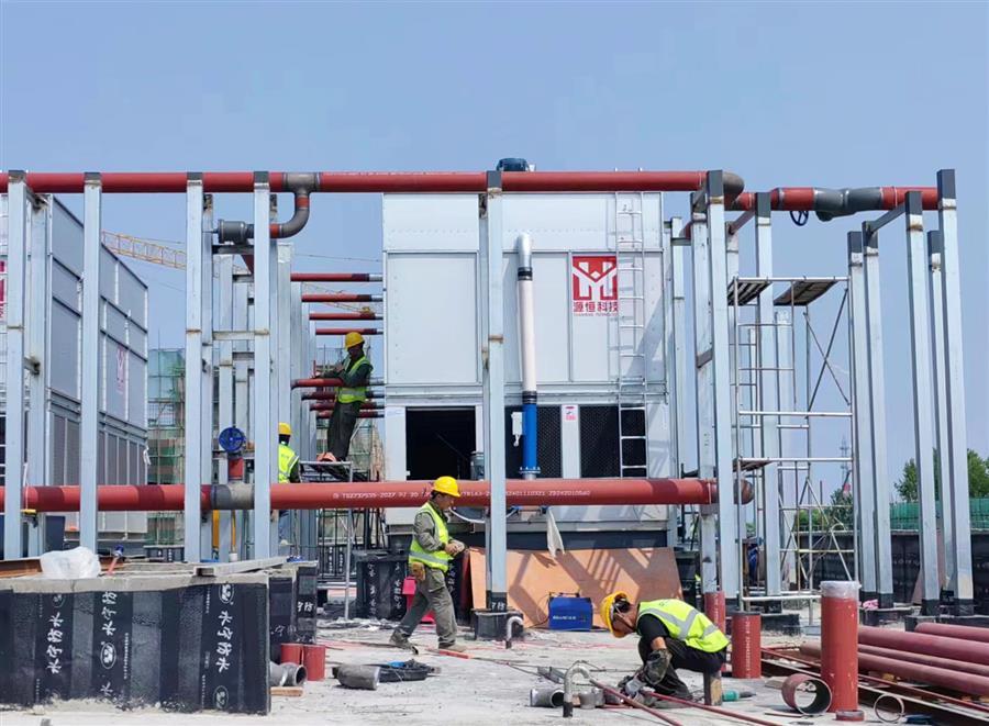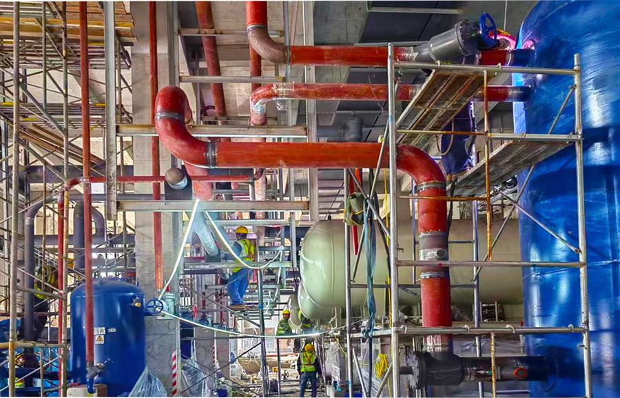 7月以來,項目部精心組織,細化項目施工任務,抓住施工“黃金期”加快推進項目建設。項目全體人員頂著高溫酷暑,堅守崗位,高標準、嚴要求,全力保障工程質量和進度,推動項目建設順利有序進行。目前,項目1#玉米加工車間屋面蒸發(fā)冷設備安裝完成,管道安裝完成90%;壓縮機、桶泵機組設備完成安裝,管道安裝完成50%、速凍機組設備安裝完成40%;3#配送中心機房屋面蒸發(fā)冷安裝完成及管道安裝完成80%;4#冷鏈配送中心室內設備及管道安裝完成90%。