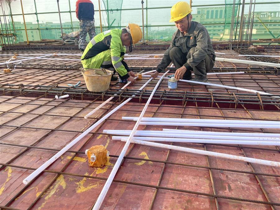 中秋將至,天氣依然炎熱。冶建公司桂海分公司承建的中國移動(dòng)廣西分公司南寧武鳴區(qū)分公司生產(chǎn)調(diào)度用房工程項(xiàng)目施工現(xiàn)場(chǎng)一派熱火朝天的景象,建設(shè)者們各司其職,切割鋼筋、搬運(yùn)材料、綁扎樓面鋼筋等,全力沖刺工程建設(shè)節(jié)點(diǎn)。