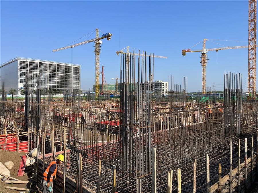 為確保項(xiàng)目建設(shè)順利開展,項(xiàng)目部制定科學(xué)的施工方案,合理安排施工時間,認(rèn)真抓好安全生產(chǎn)工作,嚴(yán)把質(zhì)量關(guān)。目前,項(xiàng)目已完成了3#高標(biāo)庫基礎(chǔ)混凝土墊層、4#分揀中心及6#冷庫的 CFG 樁、2#分揀中心基礎(chǔ)混凝土墊層等施工內(nèi)容,2#高標(biāo)庫基礎(chǔ)擋墻鋼筋綁扎已完成100%,模板安裝已完成70%。
