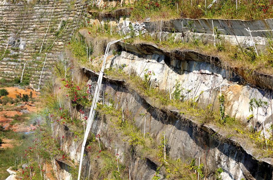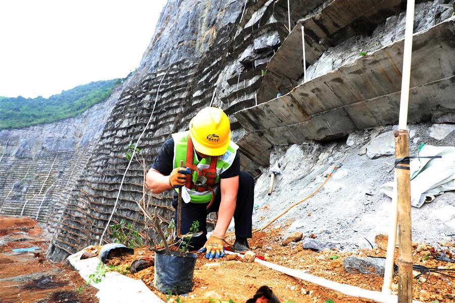 一直以來,公司積極踐行習(xí)總書記提出的“綠水青山就是金山銀山”的理念,致力于綠色發(fā)展,努力為柳州生態(tài)文明建設(shè)貢獻(xiàn)力量。2018年9月26日,樓梯山采石場(chǎng)山體復(fù)綠工程開工,采石場(chǎng)山體治理面積22.5萬(wàn)平方米,施工采取在陡壁上布置擋土板,形成V形槽,回填泥土后種植紫薇、夾竹桃、爬墻虎、三角梅等進(jìn)行綠化。