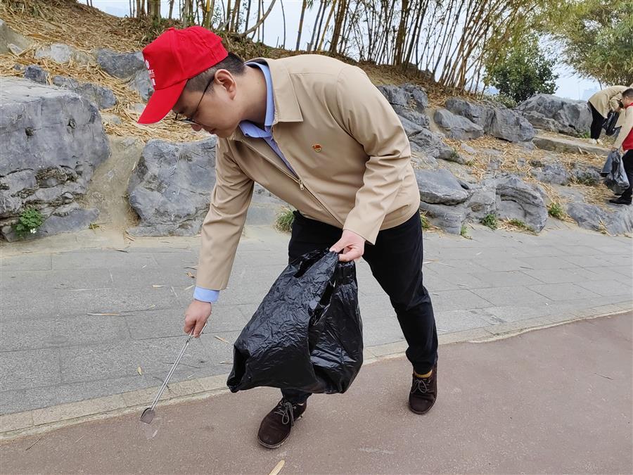 活動(dòng)中,志愿者們手持垃圾鉗、垃圾袋,沿著環(huán)江濱水步道開展“垃圾清零”活動(dòng),仔細(xì)地?fù)焓把匕兜睦?,維護(hù)江堤的環(huán)境衛(wèi)生。