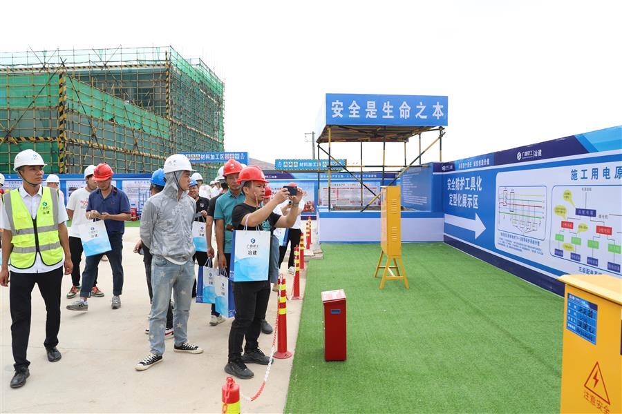 隨后,與會(huì)人員進(jìn)入項(xiàng)目實(shí)體進(jìn)行安全文明標(biāo)準(zhǔn)化生產(chǎn)現(xiàn)場觀摩,認(rèn)真聽取講解員對安全文件宣貫長廊、安全管理標(biāo)準(zhǔn)化展示區(qū)、安全防護(hù)工具化、定型化展示區(qū)、質(zhì)量樣板展示區(qū)等方面的介紹,并詳細(xì)了解項(xiàng)目建設(shè)的管理亮點(diǎn)和特色做法等。