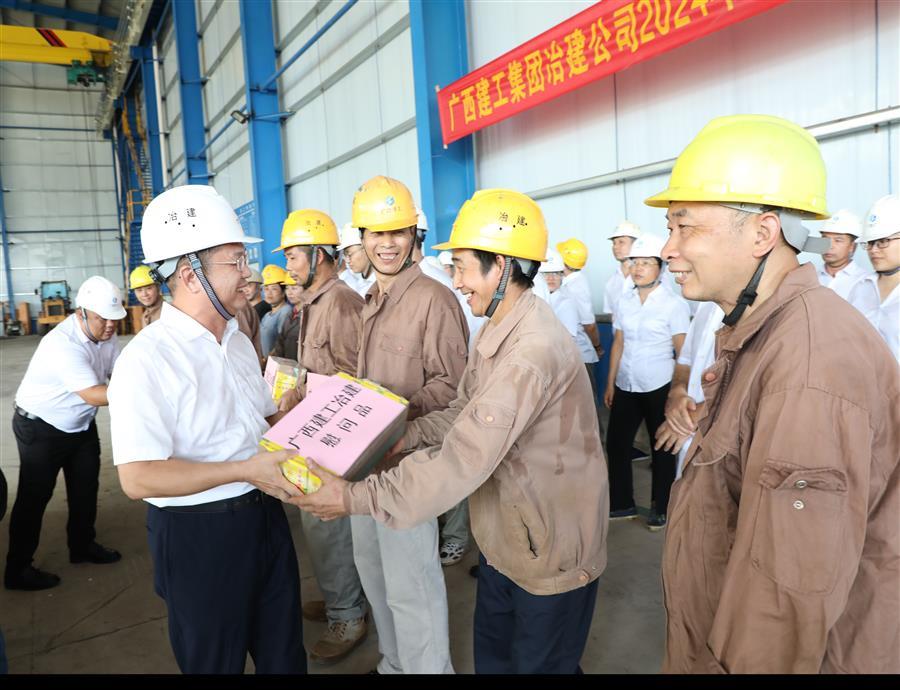 8月7日,冶建公司董事長、黨委書記覃振華,總經(jīng)理、黨委副書記蒙勝益分別到壓力容器制造廠、柳州市柳東新區(qū)明德小學(xué)項(xiàng)目開展“送清涼”慰問活動(dòng)。