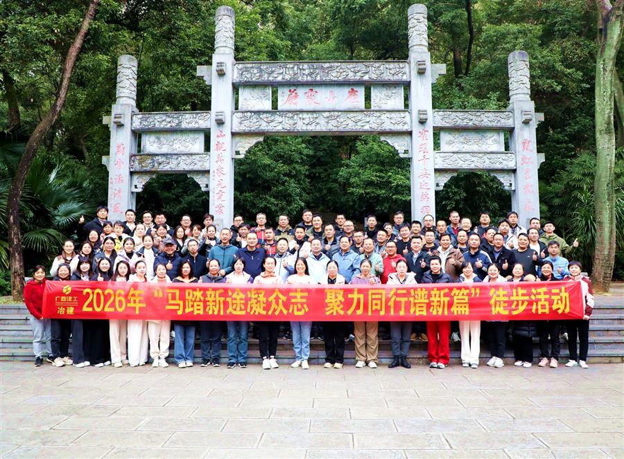 新年伊始,萬象更新。1月4日,冶建公司以一場主題為“馬踏新途凝眾志,聚力同行譜新篇”迎新徒步活動,正式拉開2026年奮斗征程的序幕。公司董事長、黨委書記覃振華,總經(jīng)理、黨委副書記蒙勝益,在家領(lǐng)導(dǎo)班子成員賴海標、廖立波、韋克雪、葉益華帶領(lǐng)本部職工闊步前行。