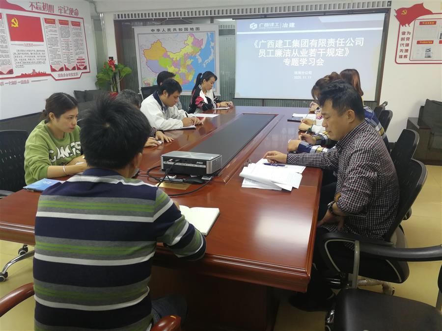 近日,南寧分公司組織召開廉潔從業(yè)會議,學習《廣西建工集團有限責任公司員工廉潔從業(yè)若干規(guī)定》等文件。